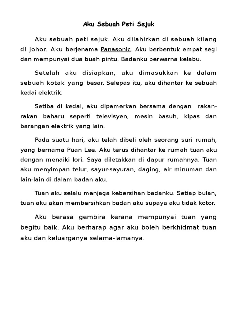 Aku Sebuah Peti Sejuk Karangan Tahun 4