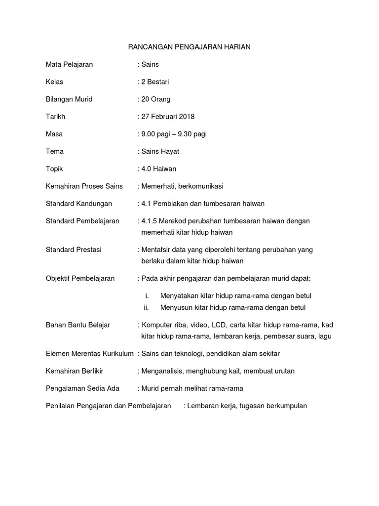 Pdf Koleksi Rancangan Pengajaran Harian Rph Haziq Sharif Academia Edu